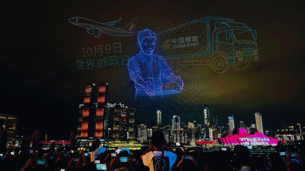 重庆:千架无人机闪耀两江夜空 光影致敬世界邮政日