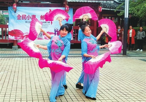 为响应全民健身号召,丰富百姓文化生活,营造全民大健身、幸福奔小康的社会氛围,绥宁县邮政分公司举办了“全民小康 ‘邮’舞‘邮’你”第三届“邮政杯”广场舞大赛,以全县16个网点为核心诚邀喜爱广场舞的中老年朋友进行团与团、队与队的比拼。比赛中,还通过抖音等移动媒体平台直播现场表演,吸引众多网友观看和点评,既展现了中老年人快乐健康的风采,也彰显了新时代邮政的品牌形象。